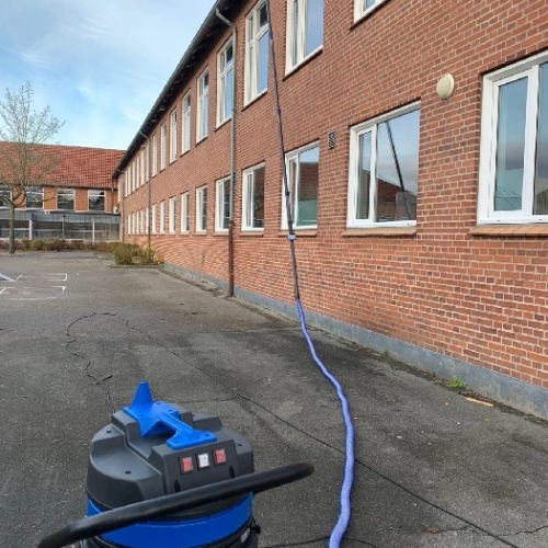 Vi støvsuger op til 12 meter og kan derved spare jer for at leje en lift. Vi anvender specialværktøjer til vores støvsuger, som tilpasses den enkelte opgave.